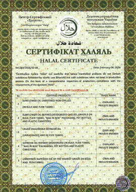 СЕРТИФІКАТ "ХАЛЯЛЬ" укр.
